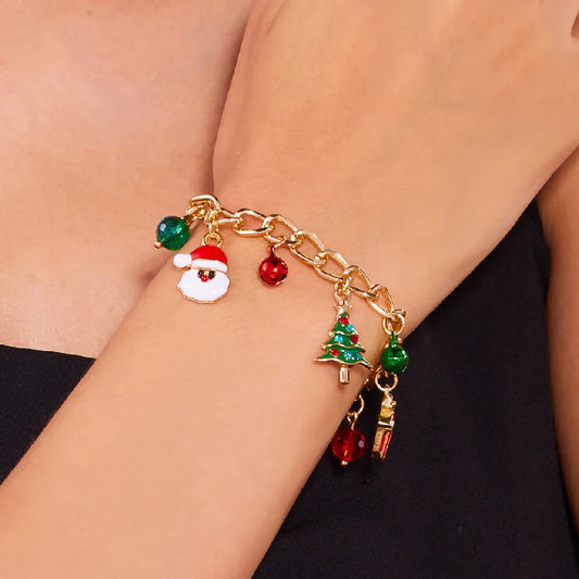 Santa Claus Star Christmas Tree Snowman Enamel Tassel Bracelet For Women