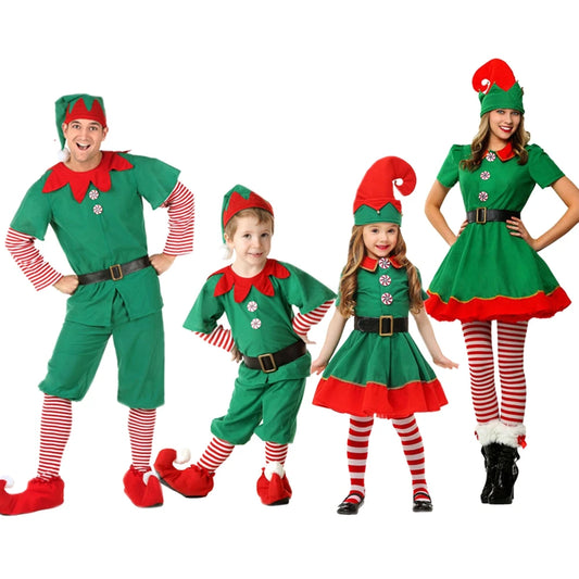 Christmas Santa Claus Costume Green Elf Cosplay Family Carnival Party Fancy Dress Clothes Set