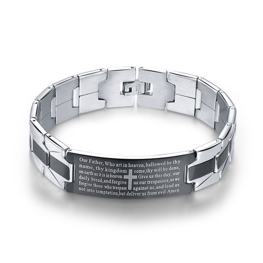 Men's Cross Bible Black Stainless Steel Bracelet