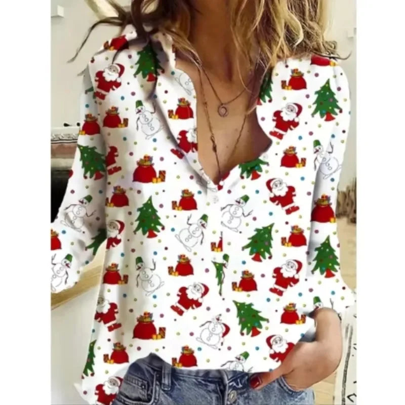 Cute Christmas Tree Santa Claus Long Sleeve Shirt