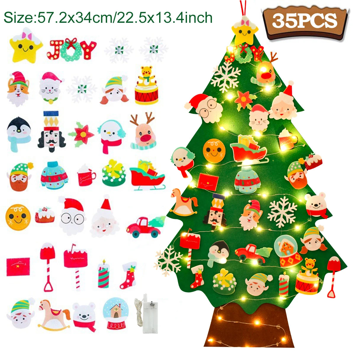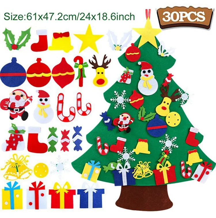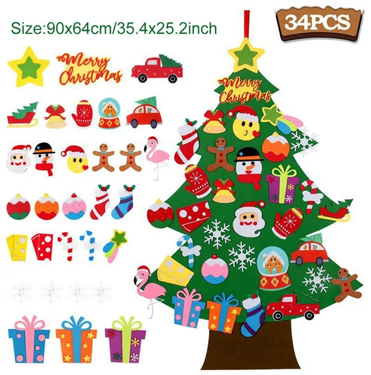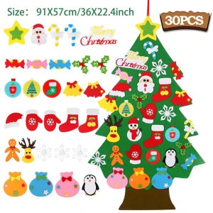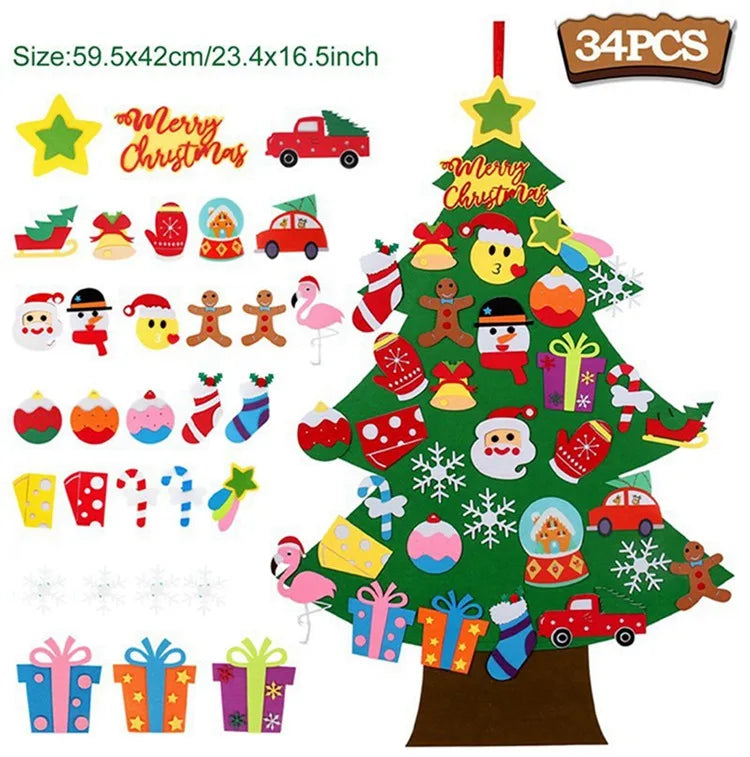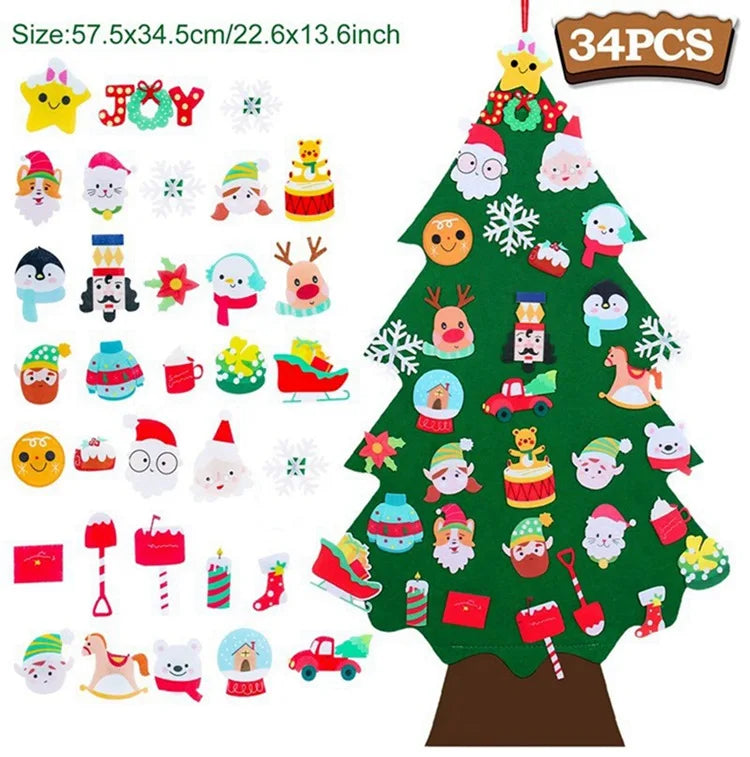 Festive and Charming Decoration: Bring a festive atmosphere to any room with this colorful, interactive Christmas tree featuring cute felt ornaments like Santa Claus and more, adding a joyful touch to your home during Navidad and the New Year celebrations.