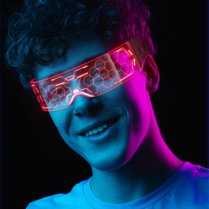Futuristic Design: The sleek, transparent frame adds a touch of futuristic flair, making these glasses a fun and stylish accessory for anyone looking to stand out during celebrations.