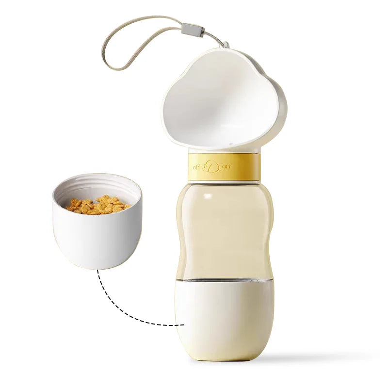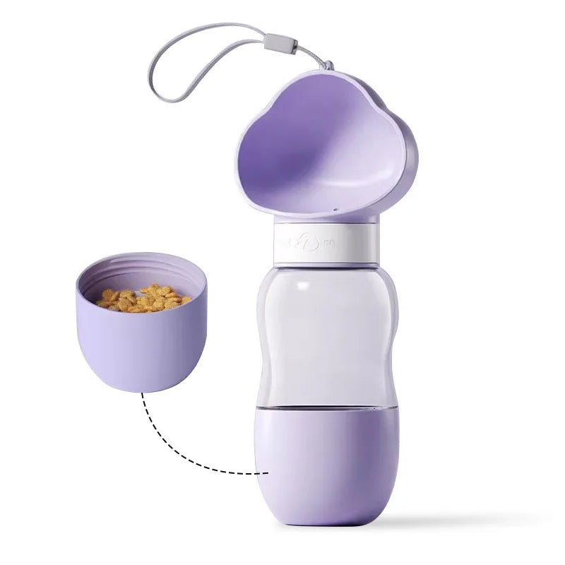 Versatile Design: This innovative 2-in-1 water bottle and food bowl is perfect for on-the-go pet owners. Its unique design allows you to easily switch between providing fresh water and dry food, ensuring your furry friend stays hydrated and nourished during outdoor adventures.