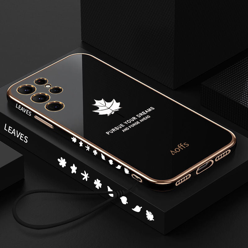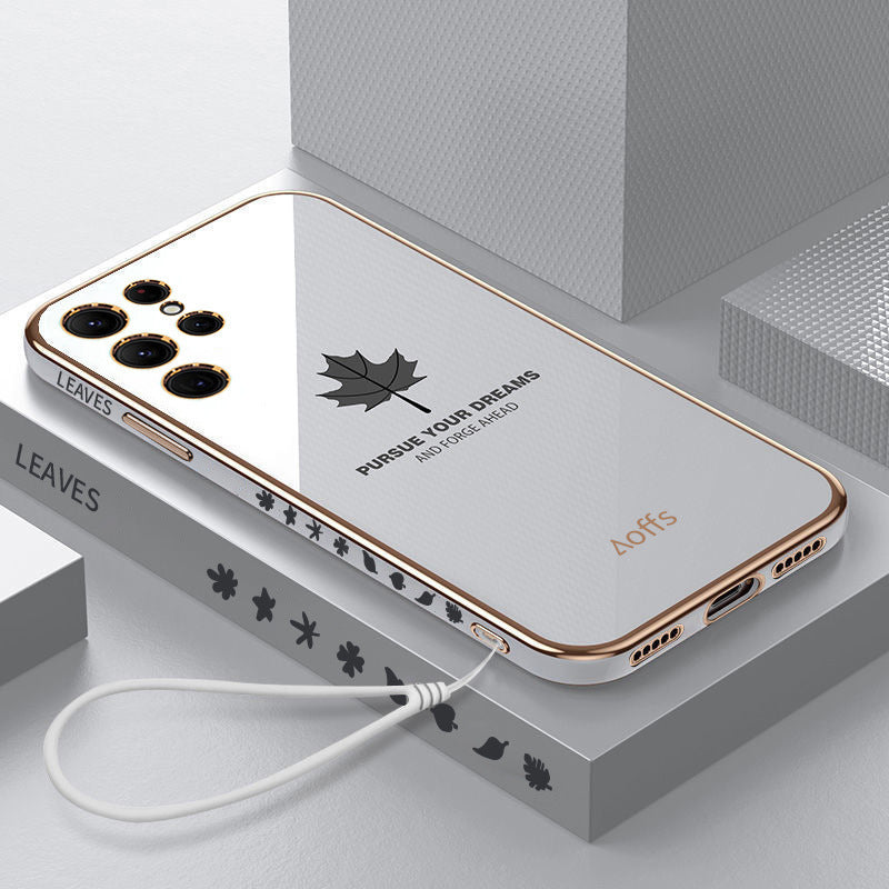 Straight Edge Electroplating Phone Case Maple Leaf Cell Phone Shell